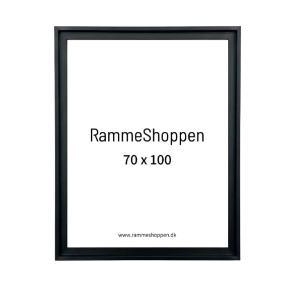 Eleganter schwarzer Schattenfugenrahmen für Leinwände im Format 70 x 100 cm.