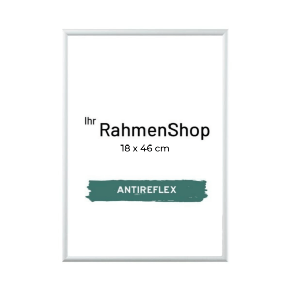 Weiße Aluminiumrahmen, reflexfrei, glänzend, schmal, 18 x 46 cm, Typ 9006
