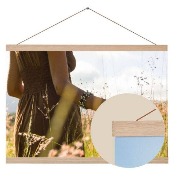 Posterleisten aus Eichenholz (50 cm) – einfache, stilvolle und flexible Lösung für Ihr Poster. Mit Lederaufhängung und Magnetverschluss.